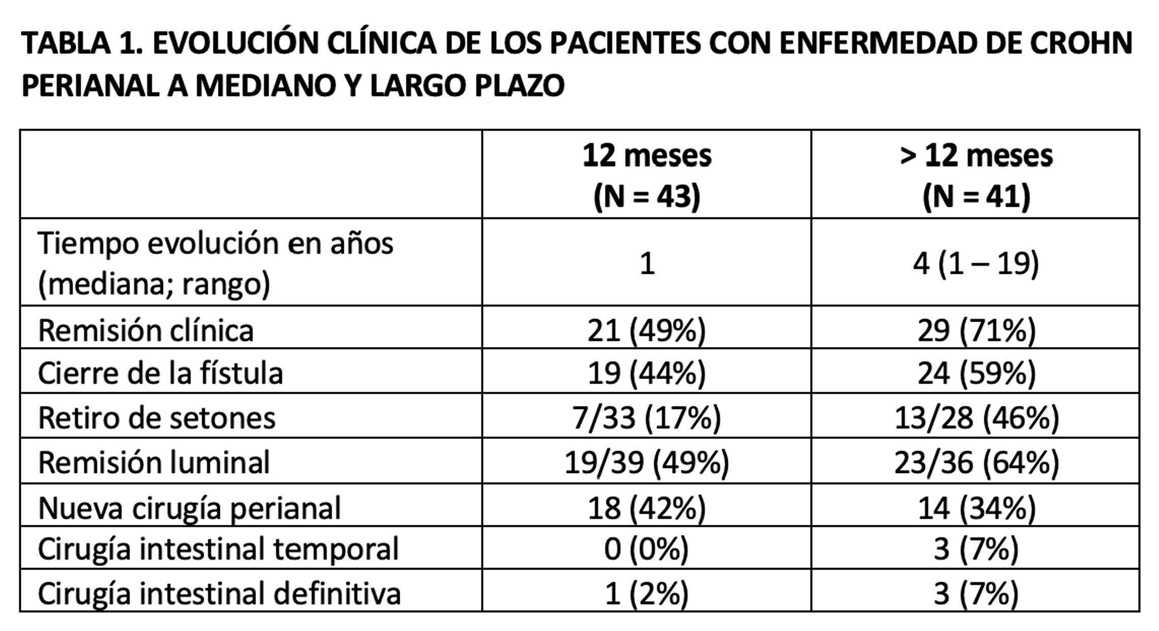 # 12 ENFERMEDAD DE CROHN PERIANAL: CARACTERIZACIÓN CLÍNICA, TERAPÉUTICA Y SEGUIMIENTO DE UNA COHORTE EN UN CENTRO TERCIARIO