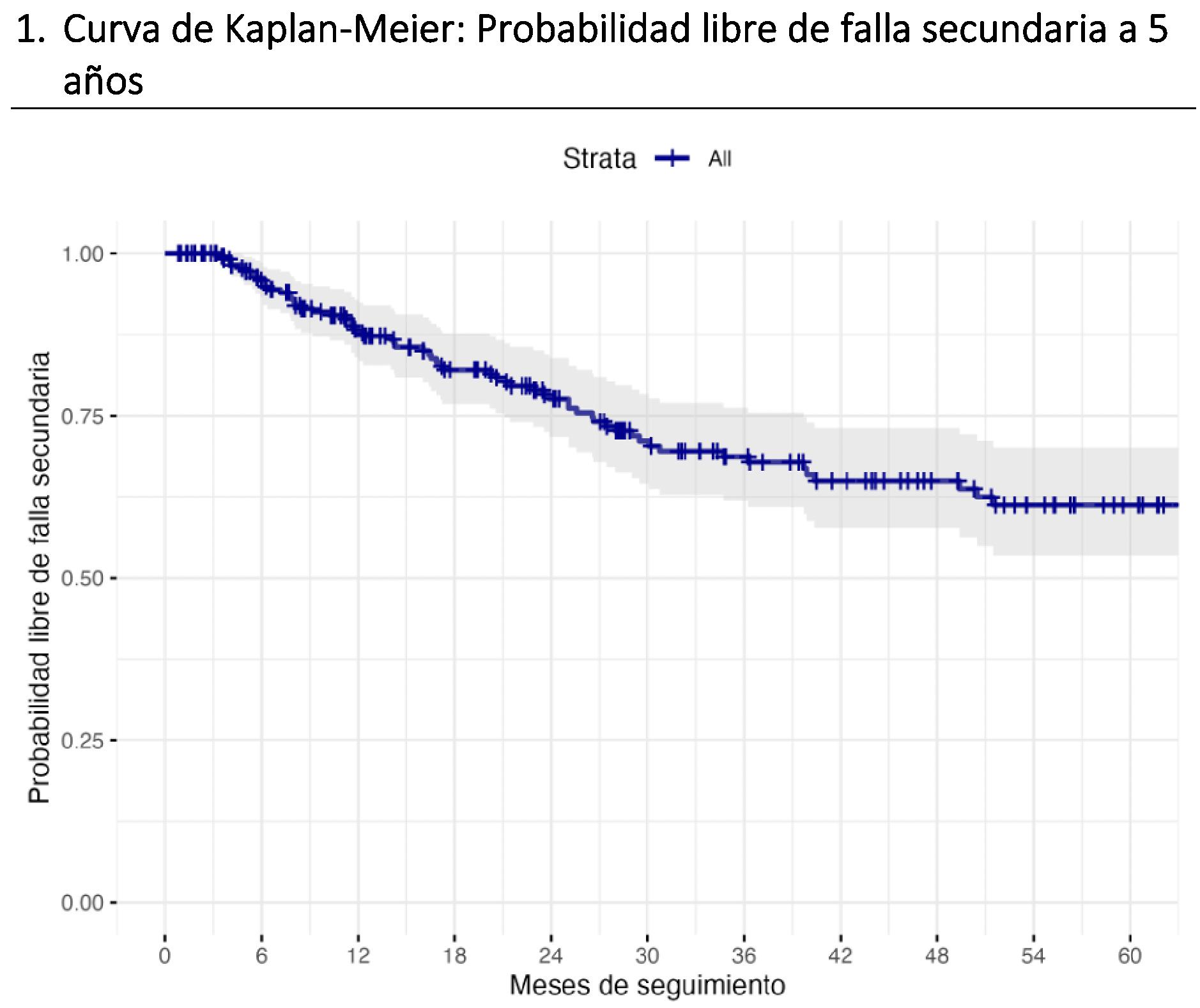 Introducción El advenimiento de terapias biológicas como los anti-TNF ha transformado el manejo de la EII, aunque persisten limitaciones por falla primaria (10-40%) y secundaria (hasta 50%). En Chile, la Ley Ricarte Soto garantiza acceso, pero se desconocen las tasas de falla Objetivos Evaluar la frecuencia y factores asociados a falla primaria y secundaria en pacientes con EII tratados con anti-TNF. Métodos Cohorte retrospectiva de 302 pacientes con EC o colitis ulcerosa tratados entre 2016-2025. Se aplicaron modelos de regresión logística y de Cox, y curvas de Kaplan-Meier. Resultados El 62% tenía EC, edad mediana 35 años y 53% mujeres. La falla primaria ocurrió en 9,3%, asociada en el multivariado a tabaquismo suspendido (OR: 3,53), sexo masculino (OR: 2,35) y protegida por manifestaciones extraintestinales (OR: 0,31). En EC, el fenotipo penetrante mostró asociación marginal; en CU, uso previo de tiopurinas, inmunorefractariedad y manifestaciones extraintestinales se asociaron con menor riesgo. La falla secundaria ocurrió en 26,1%, asociándose a anticuerpos anti-biológico (HR: 9,91). En EC, la corticodependencia y calprotectina elevada aumentaron el riesgo, mientras que albúmina alta fue protectora. En CU, anticuerpos (HR: 42,9) y PCR elevada (HR: 1,91) fueron predictores. La probabilidad de respuesta sostenida libre de falla fue de 61,2% a 60 meses. Conclusión La falla terapéutica con anti-TNF es frecuente en EII. Factores clínicos y de laboratorio permiten identificar pacientes de riesgo, apoyando el monitoreo proactivo y la necesidad de diversificar terapias.
